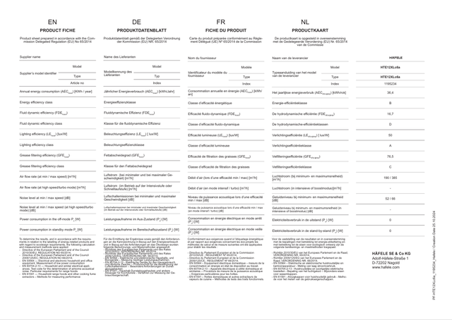 Häfele Assedo HTE12XLc6a Flachschirmhaube, Breite 60 cm, Edelstahl