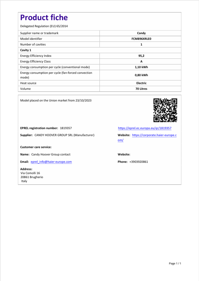 Candy FCM896XRLE0 Pyrolyse Backofen Edelstahl