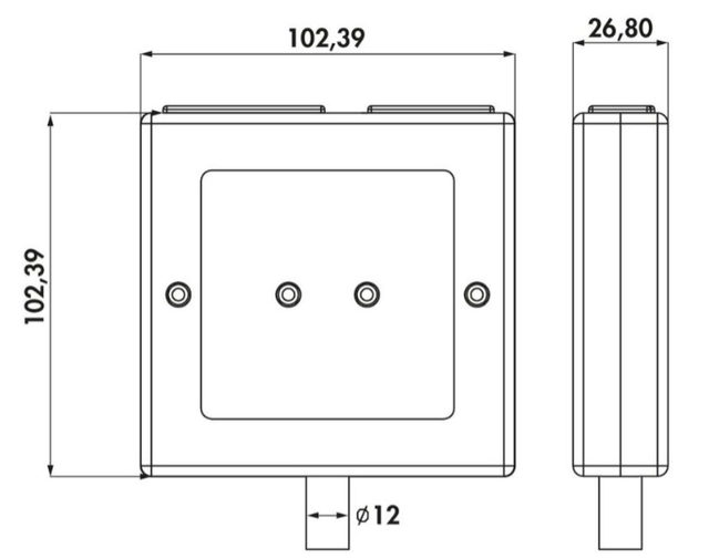 — Maße der Box: 102 x 105 x 27 mm (H x B x L)