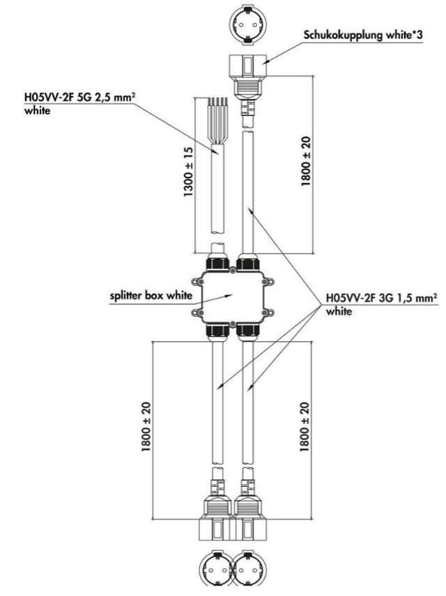 — Leitung und Dose geprüft gemäß IEC 60670-1 (DIN EN 60670-1), IEC 60670-22 (DIN EN 60670-22) und IEC 61535 (DIN EN 61535)