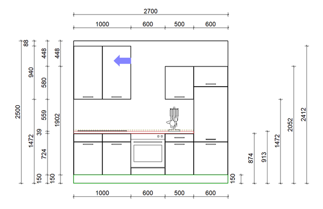 Küchenblock Andy 270cm ohne Geräte Rechts