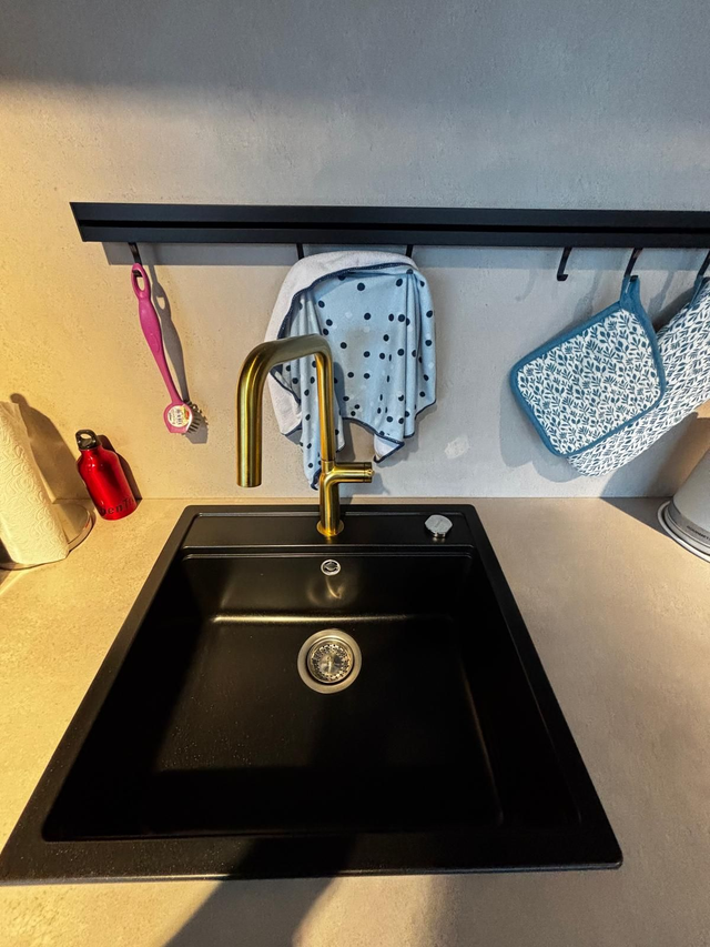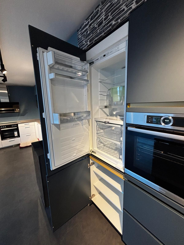 incl. Backofen, Geschirrspüler, Kühlschrank, Kochfeld Bora, Kaffeemaschine, Wärmeschublade, Granitspüle, Armatur und Beleuchtung, Müllsystem.