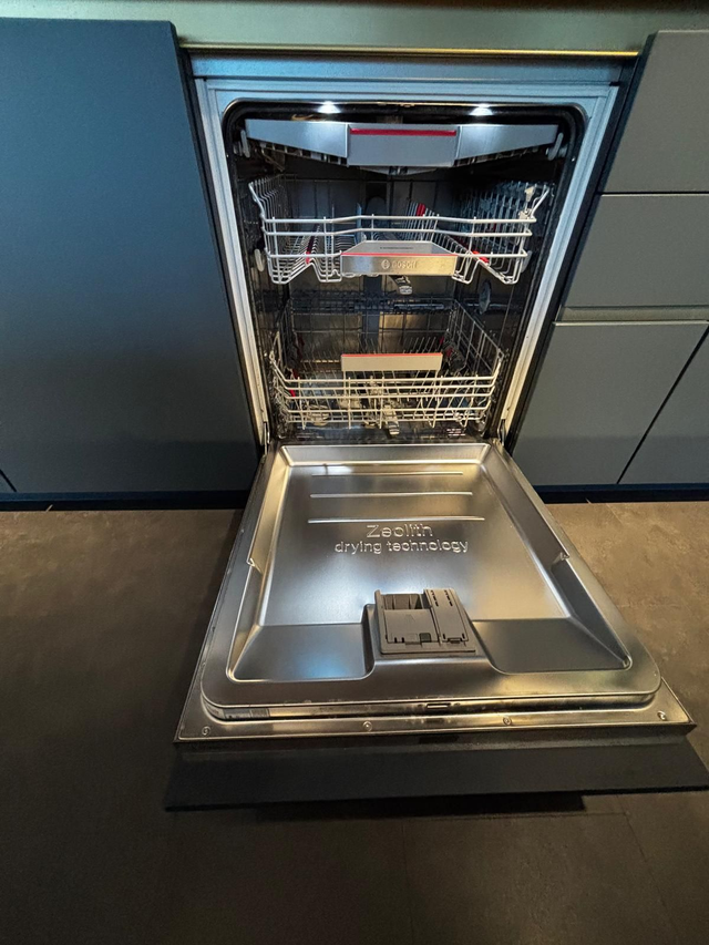 Maße: 2400x3650mm incl. Herd, Geschirrspüler, Kühlschrankn, Kochfeld, Schrägesse 90cm, Granitspüle, Armatur und Beleuchtung, Müllsystem.