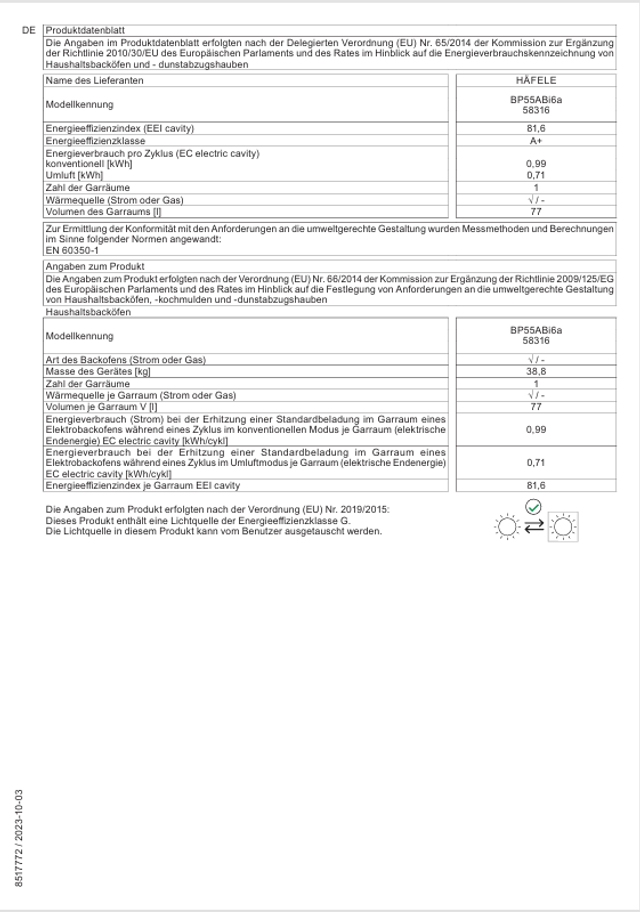 Backofen: Energieeffizienzklasse